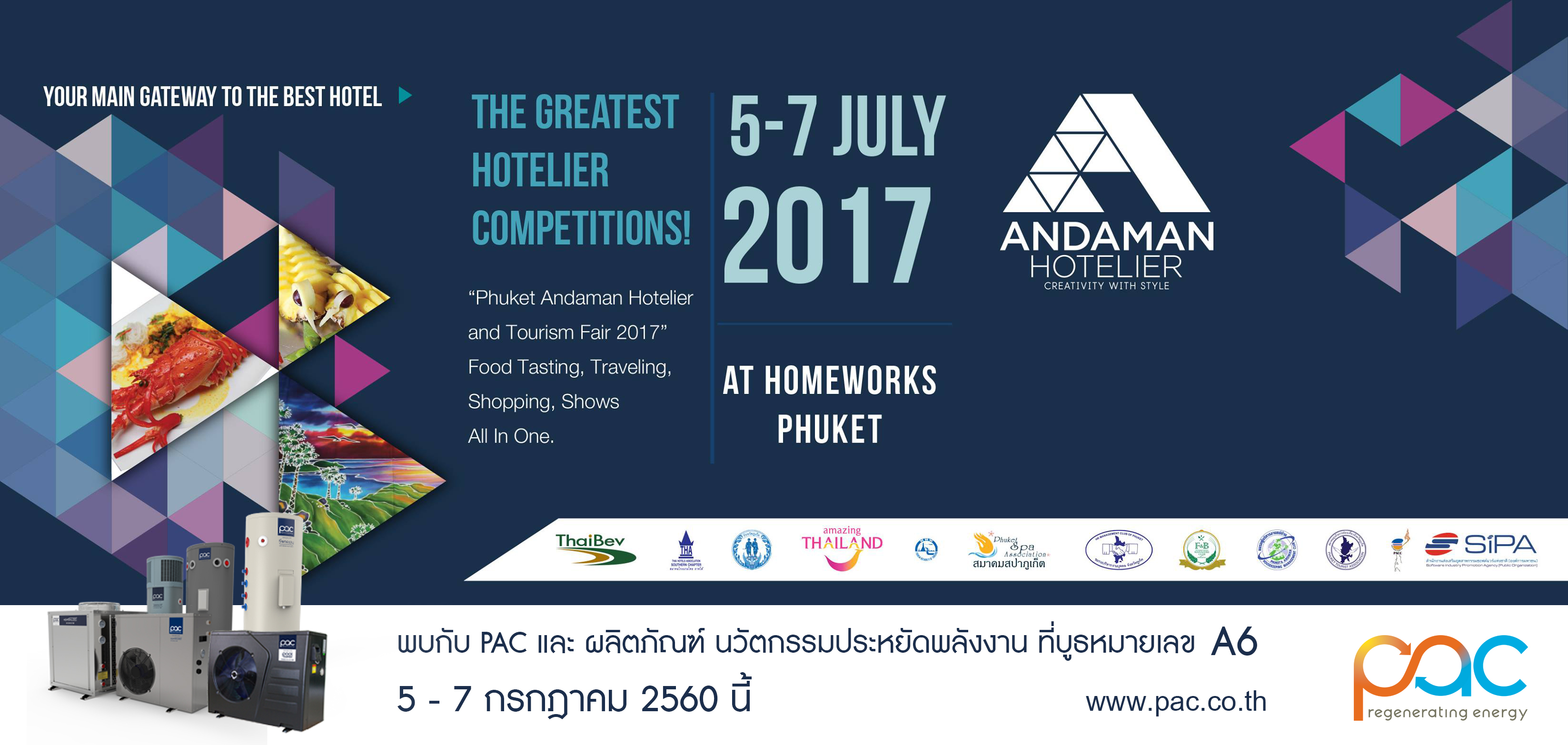 ขอเชิญผู้ที่สนใจด้านการท่องเที่ยว มาร่วมงาน “Andaman Hotelier and Tourism Fair 2017” จัดขึ้นเพื่อส่งเสริมและพัฒนาทักษะมาตรฐานฝีมือแรงงานของบุคลากรด้านงานบริการโรงแรม และการท่องเที่ยวไปสู่ระดับมาตรฐานสากล โดยภายในงานได้รวบรวมผู้ประกอบการด้านธุรกิจโรงแรมและการท่องเที่ยวมากมายจากทั่วประเทศ มาร่วมออกบูธแสดงสินค้าและจำหน่ายผลิตภัณฑ์ที่เกี่ยวข้อง โดยมีการจำหน่ายแพคเกจท่องเที่ยวราคาพิเศษ และจัดการแข่งขันประเภทต่างๆ อาทิ การจัดดอกไม้ แกะสลักผัก ผลไม้ การปรุงอาหาร การประกวดผสมเครื่องดื่มค็อกเทล บาร์เทนเดอร์ ชงกาแฟ และมีการแข่งขันสาขาอาชีพวิศวกรรม งานช่างไม้ ช่างแอร์ ช่างไฟฟ้า ช่างเชื่อม เป็นต้น