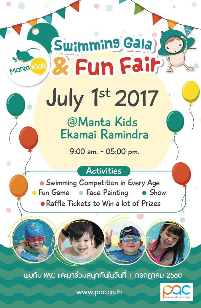 The first Swimming Gala & Fun Fair, the fantastic fair where the whole family can have fun. In the Swimming Gala & Fun Fair, you can cheer for swimmers of different swimming competitions, or enjoy the swimming shows of swimming teachers of Thailand national team and other national teams. In the event, there will be also exciting diving shows and other activities for kids of all ages. And don’t miss the chance to get a prize from the competition of PAC in this fair.