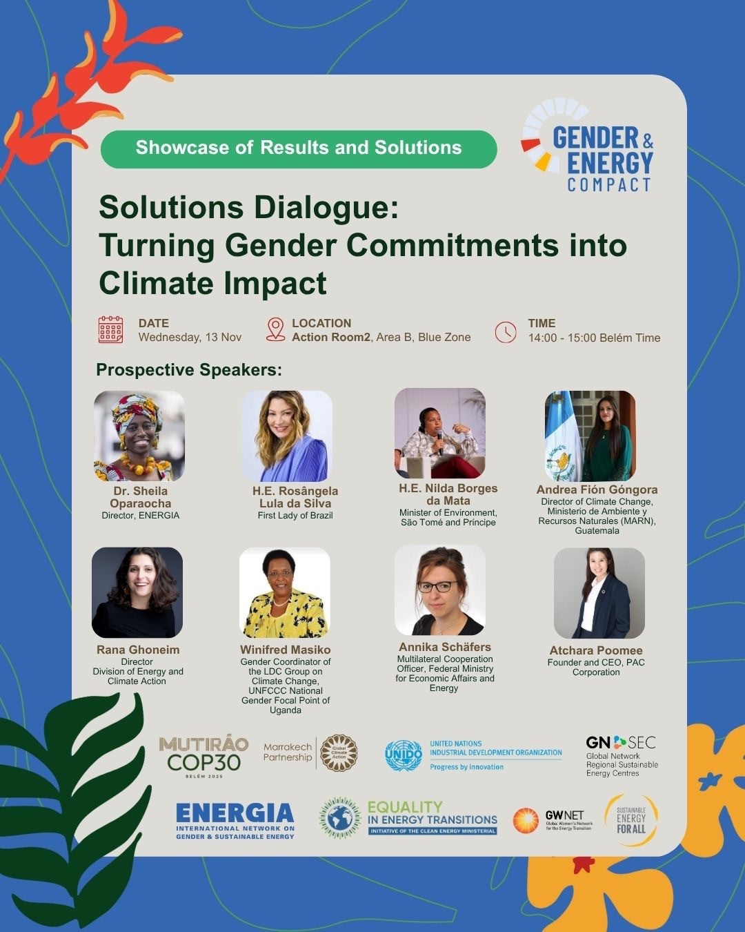 ในหัวข้อ “Solutions Dialogue: Turning Gender Commitments into Climate Impact ” เวทีที่จัดโดย UNIDO, Gender & Energy Compact, ENERGIA และพันธมิตรระดับนานาชาติ